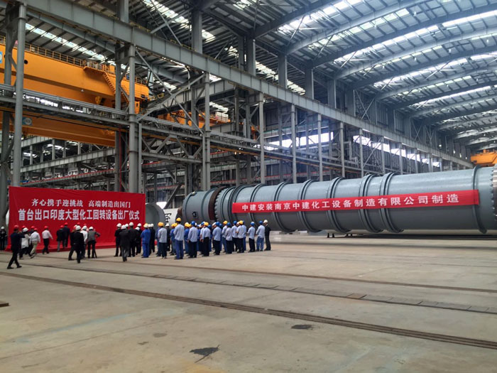 ????????我司承包設(shè)計(jì)、制造、指導(dǎo)安裝及調(diào)試的印度日處理810噸純堿項(xiàng)目關(guān)鍵設(shè)備煅燒爐于2016年5月12日在制造廠南京中建化工設(shè)備制造有限公司順利舉行出廠儀式。江蘇海企技術(shù)工程股份有限公司董事長林敏女士出席并致辭。