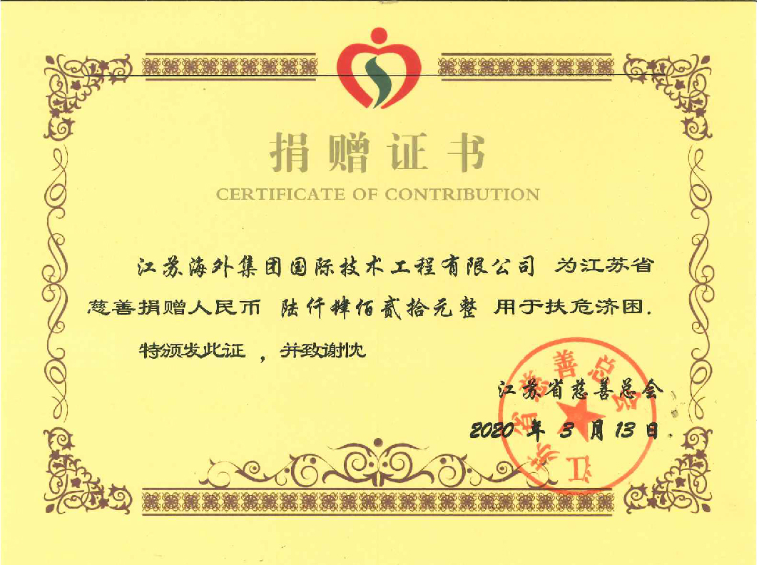 鹽城龍卷風(fēng)災(zāi)害捐贈證書